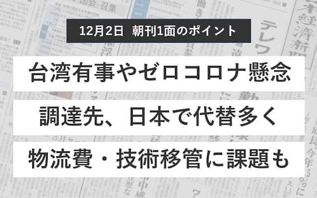 2022年12月2日の日本経済新聞朝刊1面に「中国調達『下げる』5割」という記事がありました。企業が部品などの調達で中国に頼らない供給網の構築を急ぎます。新たな調達先はどこになるのでしょうか。