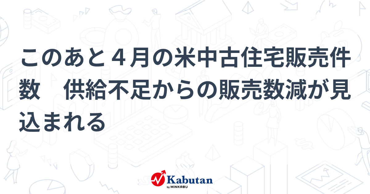 からの記事と詳細 ( このあと4月の米中古住宅販売件数 供給不足からの販売数減が見込まれる | 市況 - 株探ニュース - 株探ニュース )