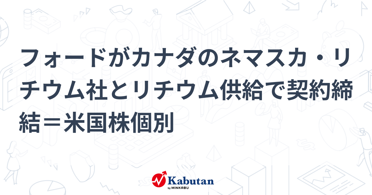 からの記事と詳細 ( フォードがカナダのネマスカ・リチウム社とリチウム供給で契約締結=米国株個別 - 株探ニュース )